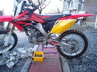 はいどーもおはようございます。死神death。 年明けからかなりCRFに乗り込んでます。 おかげで少しずつペースが良くなってきました。 しかし持久力は未だ回復せず。 3月くらいにレース出たいナー。 先週、H川クンに教えてもらった「吉べえ」に行ってきました。 なんでもボリュームたっぷりなメニューがあるとのことで調査に行った次第。 メニューを見てみると・・ なんかマ○クみたいな名前のメニューが並んでる。 死神はメガカツライスを注文。 で、やってきたのがこれ。 んー、写真だと大きさがイマイチ伝わらないなー。 カツのお皿、ホントに大皿なんdeathよ。 頑張って食すも完食できず。 次回はどんぶりメニューにチャレンジします。 こっちの方がビジュアル的にインパクトあり。 みんなも是非チャレンジしてみてくださいな。 それではー。 はいどーもこんばんわ。死神death。 先日、川越にお買い物に行ってきました。 何を買いに行ったのかはまた後日書く予定~。 不景気のおかげで今日も18:00退社という、ある意味幸せな日々を過ごしている死神。 帰ってきて「UTYニュースの星」を見てたらビックリ。 弟の個展が紹介されていたのでした。 昨日の山日新聞でも文化欄で取り上げられてたし、ここ最近エライ持ち上げられよう。 死神がとっている毎日新聞(←サイバラの毎日かあさんが読みたいが為)にも以前書いた愛宕山プラネタリウムの特別プログラムについて弟のポスターと共に紹介されてたし。 お金持ちの方、どうか個展で是非絵を買ってやってくださいな。 さて、水曜どうでしょうの後、「ニュースの星リピート」でもう一回確認してみよ。 それではー。 はいどーもこんにちは。死神death。 ここ最近不景気の影響で休日出勤が結構減りました。 おかげでバイクに乗れる時間が取れるんだけど、週末になると天気が悪く、ストレス溜まるー。 先日、タテ看につられて「シルバンズ」までビールのみに行ってきました。 タテ看のコピーは「生ビール500円!」。 現地に到着して内容を確認すると、「地ビール4種類が90分飲み放題で500円」とのこと。 早速入店しビールを流し込む。 しかし、ドリンクラストオーダー21:00に対し20:00入店だったため、実際は60分勝負。 最初の一杯はお店のヒトが持ってきてくれるんだけど、2杯目以降はセルフ。 「なんかめんどくさいなー」 なんて思ったんだけど、コレが結構面白い。 お店の人にレクチャーしてもらい、美味しいビールの注ぎ方を学ぶ死神。 確かに注ぎ方で美味しさが全然変わって(特に泡のクリーミー感)ビックリ! あと、期間限定で「チョコレートビール」なるものが用意されてた。 基本は黒ビールなんだけど、香りが甘く確かにチョコをイメージさせる。 そして泡のクリーミーさは用意されてた4種類の中でも最も高く、なんかちょっとしたデザート感覚。 お店の外には「不思議の国のアリス」のイルミネーションが輝き、いい感じー。 料理もウマー。 ビールは結局5杯飲んだところで時間切れ。 もう少しゆっくりしたかったけどお店自体も21:30で閉店だったのでさっさと退散。 1杯100円の激安ビールを美味しく頂いてきました。 このイベント2/1までみたいなんで興味のある方は是非。 それではー。 はいどーもこんばんわ。死神death。 死神の出稼ぎ先では昨日メチャ雪が降りました。 いまからハイエースで脱出を試みてみますけど、出られなかったらどおしよう・・・。 今年の年末は久しぶりの大型連休。 おかげでバイク整備を結構進めることができました。 とはいってもオイル交換レベルの簡単な整備ですけどね。 まずは「鹿」から。 取り扱い説明書によると6000kmごとに交換みたいなんだけど、「鹿」を引き取ってから1回も交換したことがないってのと、去年花屋さんと共同購入したオイルを使ってみたかったてのがあり、走行距離3000kmで交換することにしました。 取り説に従いカウルを取り外してオイル交換。 結構カウルの着脱に時間がかかるも何とか完了。 しかし、あとから良く見てみるとカウルを取り外さなくてもオイル交換できることが判明。 だったら書くなよー、そんなこと(怒)。 次はCRF250。 このバイクは4サイクルなのにエンジンオイルとミッションオイルが分かれている、一風変わったエンジンなのdeath。 使用量も2つあわせて1.3L程度とある意味オサイフにもやさしい。 こちらはカウルも無いのでらくらく交換。 お次はNSR50。 コイツはピストンリングの交換と、新型カウルの試着。 交換履歴によると20時間くらい走ってるはずなんだけど、リングのテカり具合はそこまで磨耗しているようには見えない。 ピストン下への吹き抜けた跡もなし。 これだったら交換しなくても良いレベルっぽい。 もしかしたら履歴に書かなかったときがあったのかな? そうは言っても折角エンジンを開けたのでリングは新品に交換しました。 カウルは、今回思いきってフルカウル新調。 本来シートカウルのポジションに不満があって購入を考えたんだけど、フ