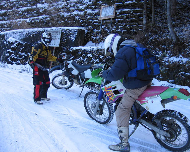 新年あけましておめでとうございます。死神death。 ブログをはじめて早2年。 今年ものんびり書いていきたいと思いますー。 毎年行っているレース結果の総括を昨年分もやってみたいと思います。 とは言っても仕事が忙しく、参加レース数はなんと2回のみ。 随分と寂しいレース活動でした。 まず1回目は白糸ミニバイク5時間耐久。 GP80時代の友達E藤クンと組んでのエントリー しかし2人は正直キツイ! 今年は3人で参加したいなー 成績は 首狩り71人 首刈られ44人 でトータル27人首狩り でした。 2回目はクロスパーク勝沼で行われたモトウエストカップ。 半年振りに乗るバイクでのぶっつけ本番レース。 しかしさすがに通用する訳なく、結果は惨敗。 特に転倒が多かったことが敗因。 しかし、転倒の理由はライディングフォームにあったものと推定。 この冬はCRFに乗り込んで、ライディングフォームを体に染み付けたいdeath。 成績は 首狩り4人 首刈られ11人 年間のトータルの首狩りポイントは 首狩り75人 首刈られ55人 相変わらず真ん中ちょい上の成績止まり。 今年こそは表彰台でシャンパン飲む成績を残したいものdeath。 それではー。 PR はいどーもこんばんわ。死神death。 先日買ったipoddeathけど、死神とイマイチ相性が良くない。 最近めっきり使わないでいます。 ヤフオクで売り払っちゃおうかなー? で、タイトルの件だけど先日パイロンさんのブログで紹介されていた「おっぽに亭こっこ」なる卵かけご飯専門店に死神も行ってきました。 卵・米・醤油だけで勝負を挑むというメチャ硬派なスタイルのお店です。 場所は北杜市白州町。 蛇口をひねればサントリー「南アルプス天然水」が飲めてしまうなんともうらやましい町。 メニューはタマゴかけご飯とデザート・飲み物が少々。 死神はけんちん汁付き卵かけご飯大盛りを注文。 卵はテーブル脇の籠に入っていて「ご自由にお使いください」状態。 貧乏性な死神はここぞとばかりに卵3個使用。 んープチセレブ気分~。 しょうゆも卵かけ専用。 そんなニッチなしょうゆがあるなんて知りませんでした。 さて、肝心のお味ですが、けんちん汁が絶品の美味しさ! もちろんご飯・卵は言うに及ばず。 あーもう少し早く知ってたらこの前の林道ツーリングの帰りによりたかったなー。 それではー。 はいどーもこんばんわ。死神death。 日曜日に今シーズンの初雪が降りました。 去年に比べれば少し遅いけど、でもやっぱり早いよなー。 早めにスタッドレスに交換しといてよかったー。 最近チョット変わった飲み物が何点か手に入ったのでご報告。 1点目は「ROCKST☆R」。 Xゲームを見ているヒトにはお馴染みのドリンク。 日本じゃ販売してないと思ってたら売ってました。 これは里吉のバイク屋さんで入手。 そしたら店長さんらしきヒトもXゲームに出てきそうなタトゥー入りまくりなお兄さんでちょっとビックリ。 でも物腰はとても柔らかく、バイク話で盛り上がってきました。 肝心な味だけど、予想通り「RedBull」に近い。 とても濃厚で酸味の効いたオロナミンCといった感じ。 でもコレは効きそうな感じ。 次は「monstar erergy」飲みたいな。 2点目は変わった容器に入った焼酎。 なんか宝石みたい。 フラッシュたいて撮ったらとてもキラキラしてキレイ。 死神は芋焼酎とか香りにクセのある焼酎はあまり好きじゃないんだけど、コレはクセが無くとても飲みやすい。 ロックで美味しくいただきました。 3点目は「ホットワイン」 少し前にウィーンに留学したことのあるヒトと話ししてたときにホットワインの話がでて、聞いてたらなんか飲みたくなっちゃって。 で、吉田の某スーパーで眺めてたら売ってたんで買ってみた。 しかし、買ったはいいものの、死神の部屋にはコンロも電子レンジもない。 ・・どうやって暖めよう。 とりあえず冷たいままで飲んでみたけど、このままでも全然イケル。 フルーツワインにシナモンのフレーバーが効いていて、飲み口が軽くとても飲みやすい。 つぎはちゃんとホットワインとして飲んでみたいdeath。 いい方法ないかなー それではー。 はいどーもこんばんわ。死神death。 少し前ネットニュース見てたら「毎日かあさんアニメ化」との情報が! 「いけちゃんとぼく」映画化&「おんなのこものがたり」映画化に続くサイバラ作品の映像化。 しかしどの辺までサイバラテイストが出せるんだろ? そのへんがチョット気がかり。 先先週の日曜日、KX250さん&花屋さんの3人で林道ツーリングに出かけてきました。 死神の実家を出発地点とし、甘利山や甲斐駒ケ岳の山中をつないで走っていく。 数日前に雨の降った影響で路面がしまっていてコンディションは抜群。 ちょっとした直線があれば80kmにすぐ乗せられるくらいグリップが良く楽チン~。 白根の山奥からまず1本目の林道に入る。 距離も、ガレ具合もほどほどでウォーミングアップに最適。 続く2本目はダート距離が長い、比較的行きつけの林道。 遠くには富士山も見えます 林道を抜けきる頃