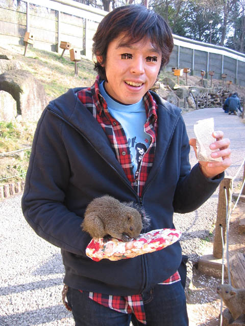 PR はいどーもオハヨウございます。死神death。 先日「宮内洋探検隊の超常現象シリーズ 甲府盆地にUFOの基地があった!」を借りてみました。 結構期待して見たのですが、甲府盆地の神社仏閣・遺跡を訪ね「UFOとのつながりがあるかもしれない」をお茶を濁したコメントがついてオシマイ。 残念ながら全く核心に迫っておりません。 死神、かなりガックリ。 でも、地元に住んでても知らないようなマニアな場所を紹介してたんでその辺は高評価。 次作に期待なのdeath~。 1週間空いちゃいましたけど、前回の続きを。 モルと戯れご満悦の死神。 次はリスの餌付けに挑戦death。 入り口を入り、ひまわりの種を購入。 手にはミトンをはめてリスとご対面。 餌付けコーナーのリスは台湾リス。 テレビでよく見るリスと違い、浅黒いdeath。 んー、シマリスとかに餌あげたかったなー。 閉園間近で心配された餌の食いつきもグー。 器用にカラを割ってひまわりの種をもしゃもしゃ食べていきます。 ホント、目にもとまらぬ速さ。 しかし、人には警戒心があるらしく、ミトンの上に置いた種をヒットアンドアウェーで1コ1コ持ち去っては食べる台湾リス。 でも、やはり餌付けするなら手に乗せたい。 さらに欲を言うならば肩に乗せたい。 なので、餌を駆使して誘導を試みる。 試行錯誤の末、なんとか手乗りに成功。 こーやって見るとちょっとおっかなびっくりだね。 でも、たのしー。 だが、こーなってくると人間欲が出るというもの。 あれやこれやと知恵を働かせ、リスを誘います。 なんとかカメラ目線での撮影に成功。 そーこーしているうちに2匹同時に餌をねだられ、てんてこ舞いな死神。 そして風太くんポーズでの撮影に成功。 ここまでくると、ちょっとした「リス使い」だね。俺。 その後も頑張って肩に乗せようと試みるも残念ながらタイムアップ。閉園death。 従業員の方に扉を開けてもらい、日が傾き、少し冷えた空気の中帰路に着きました。 あー、楽しかったー。 このリス園、障害者の方の雇用創出の一面もあるみたいで、何人もの人が餌を売ったり、扉を開けてくれたりして園内のサービス向上に努めてました。 そりゃみんな、働いて好きなもの買ったり、プレゼントしたりしたいもんね。 やるぜ、町田市。かなり高評価。 また行くかもしれないのでそのときはよろしくdeath~。 今日の一曲はJiLL-Decoy association 「輪」 タマタマ聞いてみたらかなりの死神好み。 特にサビがカッコイイ!。ハマリそうな予感なのdeath。 現在「Yahoo!動画」で配信中なので興味のある方は是非。 それではー。 はいどーもこんばんわ。死神death。 今日は久々の連投なのdeath。 書きたいネタはイロイロあるんですが、なかなか書く時間が取れなくて出待ちな状態なのもいくつかあるんdeath。 他のヒトみたく、写真を効果的に使って文章を簡潔に書けば短時間でアップできるんでしょうけど、なにせ死神は「文章を要約して書く」という能力が根本的に無いため、冗長な文章しか書けないのdeath。 書くのに時間がかかり大変なのですが、でもこれが死神のブログスタイルなのでもうしばらくこの形式で書いていこうと思ってます。 なので、今回は出待ちネタを。 1ヶ月ほど前、突然「小動物に心癒されたい」という衝動にかられた死神。 なので行って来ました「町田モル園」。 ここはリス・モル・ウサギなどの小動物と触れ合える施設なのdeath。 えっ、「町田リス園」の間違いじゃないかって? いえ、あそこは死神にとっては「モル園」なのdeath。 いや、だってモルが一番カワイイんだもん(爆)。 リスやハムってちょっとすばしっこ過ぎていまいち感情移入できないんだよね。 その点、モルは 動きはトロいし、 鳴き声も「プキュー」とか「プピー」とかすごく愛らしくって好きなんだよね、 まあ、一番気に入ってるのは 顔はブサイクなとこなんだけど(照)。 英語名が「ギニア ピッグ」って言うらしいんだけど、確かにある意味「手乗りサイズのブタ」daeth。こいつら。 モル園で餌付けする前に「しゃぶしゃぶどん亭」でしこたま自分を餌付けし準備を整える。 しかし、食べ放題をいいことに延々食べまくってたら閉園時間が迫ってしまい、お腹をさすりながら慌てて町田へ向かいます。 なんとか閉園1時間前にはモル園に到着。 入園し、速攻「モル広場」へゴー。 途中に設置してある「モル・ウサギ用の餌」を手に取りいざ接見。 おーおーいるぜ、モル共が。 結構人気だねー。 このぎゅーぎゅーぶりがタマンねー。 さすがにこの数ってなると個人じゃ飼えないからなー。 早速餌付け開始。 閉園間近だってのにこの食いつき様。 レタスを奪い合って食べてます。 食いつき良すぎで、餌があっという間に無くなっちゃいました。 すると 「もっとおくれよー」 と風太くんばりに立ち上がっての餌のおねだり。 ええ、もちろん餌皿追加購入しましたとも。 いや、しかしブサイクでカワイイなー。 しかし、モルにも個性があるみたいで餌に興味をもたず