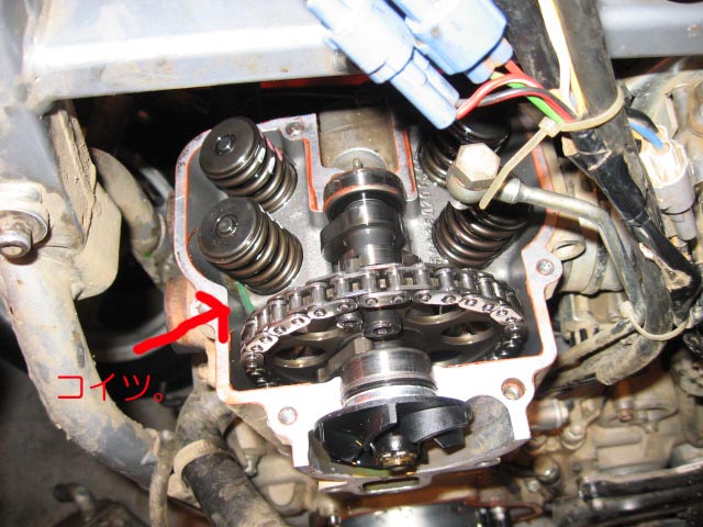 あらゆる角度から中を覗いてみるが何処に落ちたか判らない。 仕方なくヘッドカバーも外すことに。